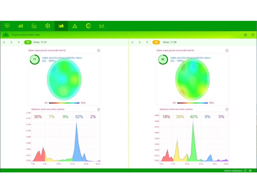 Pro posouzení psycho-emocionálního stavu se rovněž používá metoda neurodynamické analýzy srdeční frekvence, protože procesy vyskytující se v centrálním nervovém systému se projevují ve změnách srdeční frekvence.